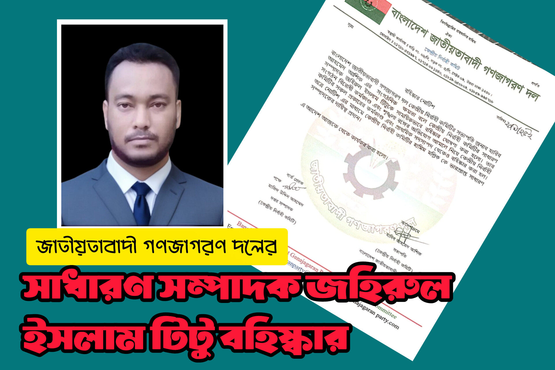 দলীয় শৃঙ্খলা ভঙ্গের অভিযোগে বাংলাদেশ জাতীয়তাবাদী গণজাগরণ দলের কেন্দ্রীয় নির্বাহী কমিটির সাধারণ সম্পাদক জহিরুল ইসলাম টিটুকে বহিষ্কার করা হয়েছে।